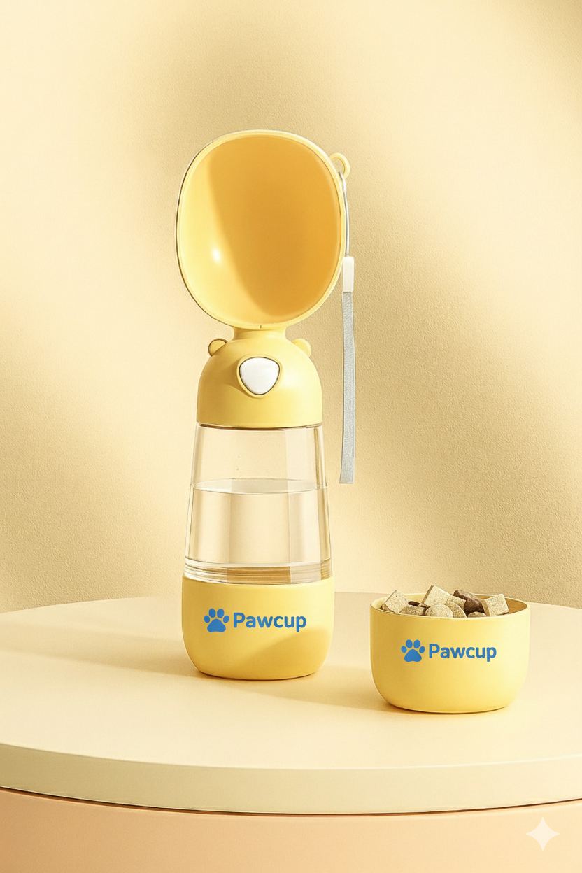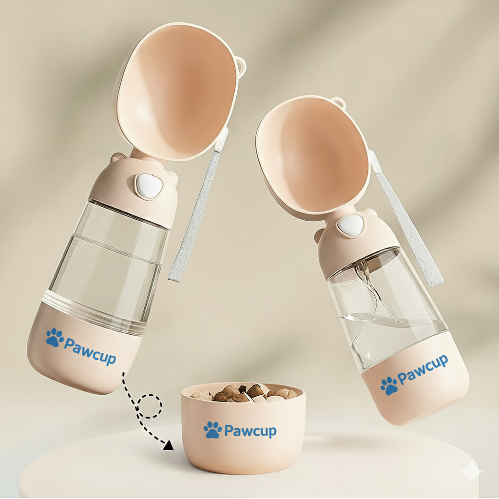 Pawcup Àr en smart vattenflaska med en inbyggd skÄl som gör det lÀtt att ge din hund vatten nÀr ni Àr ute och gÄr, reser eller Àr pÄ utflykt.